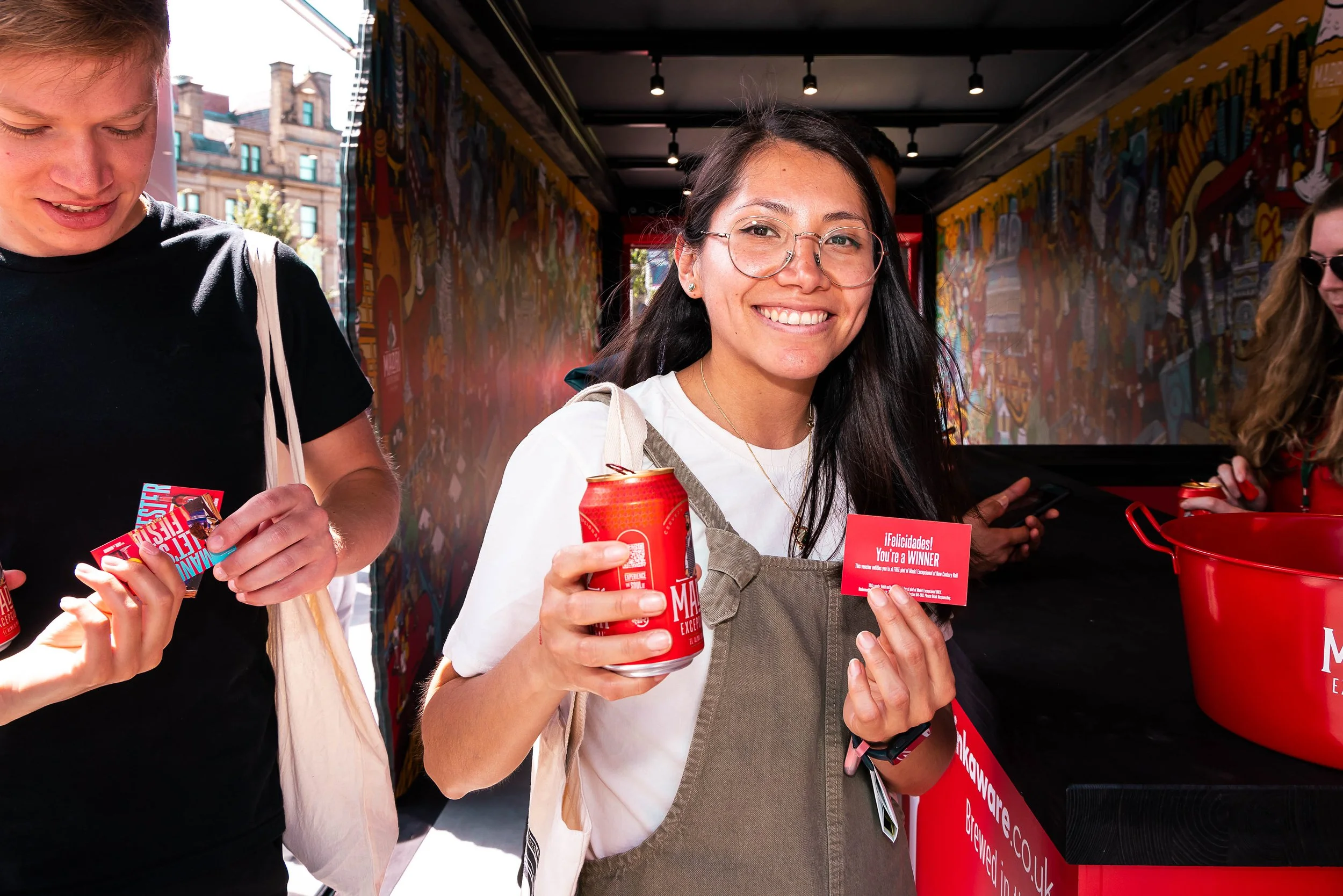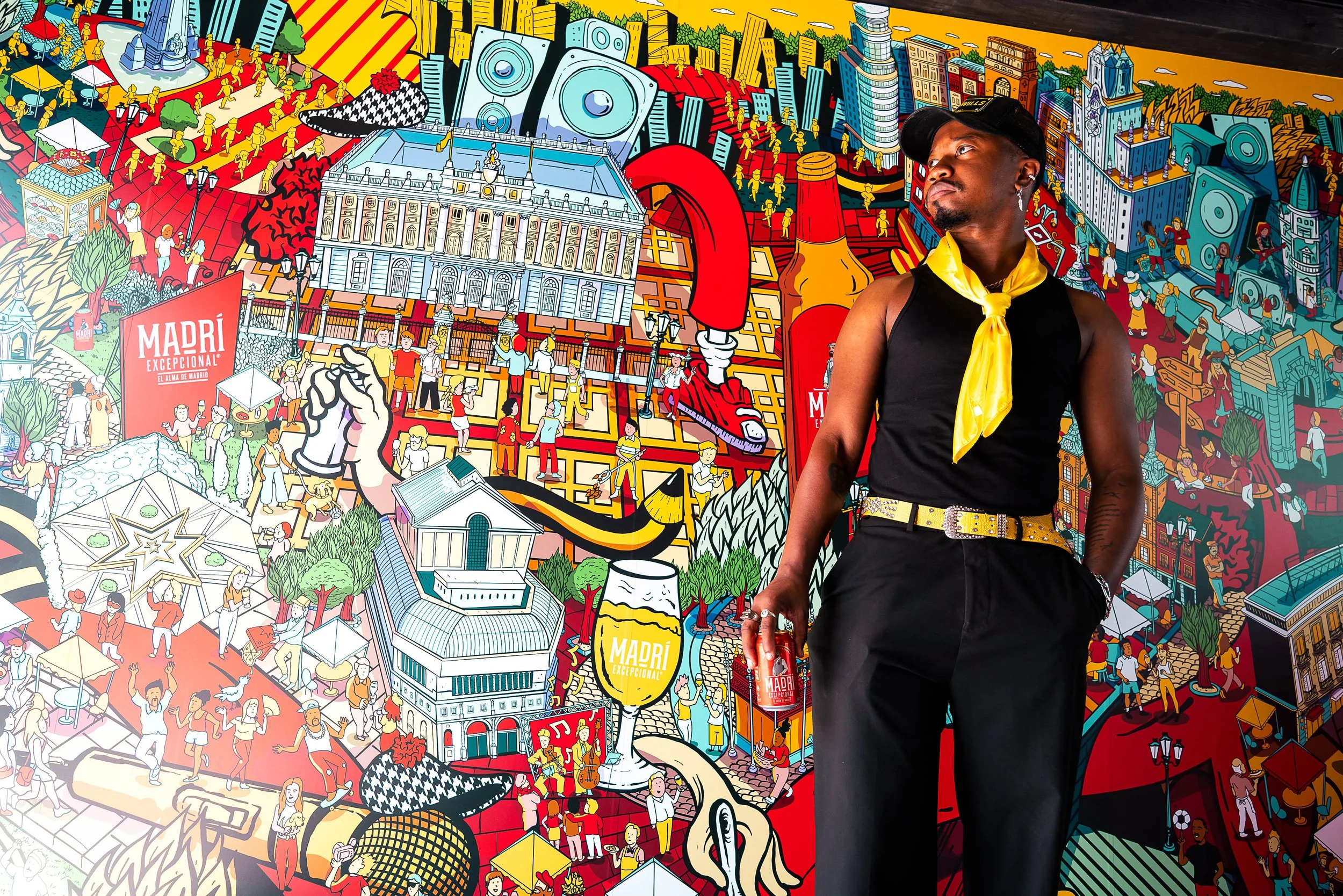 Guests entered through a walk-through billboard, featuring Gus Morais’s street art mural. By scanning for hidden Madrí logos, visitors could win prizes while enjoying the iconic city scenes.